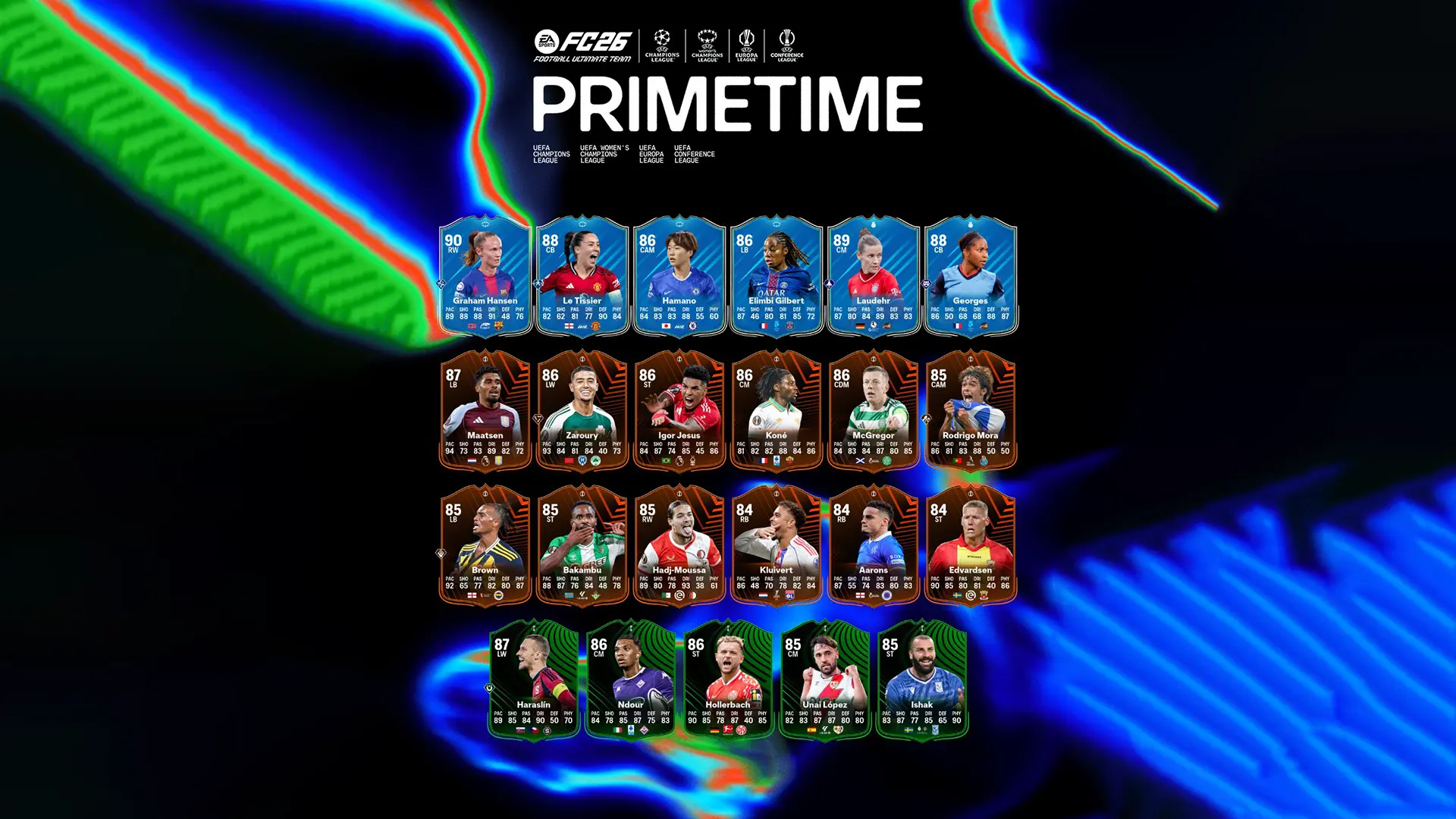 The UEFA PrimeTime Team 1 for EA FC 26 Ultimate Team has been leaked. The special cards from the Fourth promo of the season have been revealed and will be available in UT 26 packs for a limited time, starting at 6:00 p.m. on Friday, 7 November.