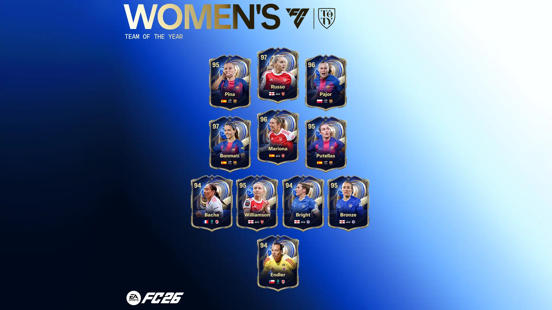 The TOTY Women Team for EA FC 26 Ultimate Team has been leaked. The special cards from the Eleventh promo of the season have been revealed and will be available in UT 26 packs for a limited time, starting at 6:00 p.m. on Friday, 16 January.