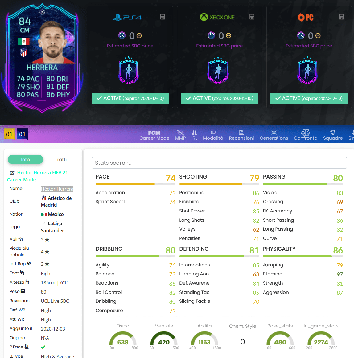 Soluzioni SBC Hector Herrera RTTF UEFA Champions League